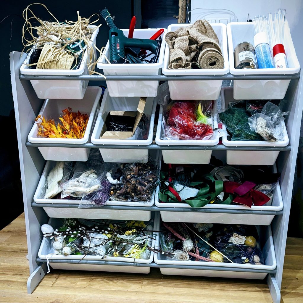 Tu przechodzimy do sedna tego wpisu, czyli do prezentu gwiazdkowego od mojego kochanego Dziadka. Regał (teoretycznie na zabawki) wyposażony w różnej wielkości kuwety okazał się strzałem w dziesiątkę i spełnił doskonale swoją funkcję. Nieskromnie powiem, że wcześniej sama go skręciłam. Brawo ja ???? Po skończonych porządkach (oczywiście w nagrodę:) stworzyłam serce z kwiatów i kory ale o tym wkrótce…