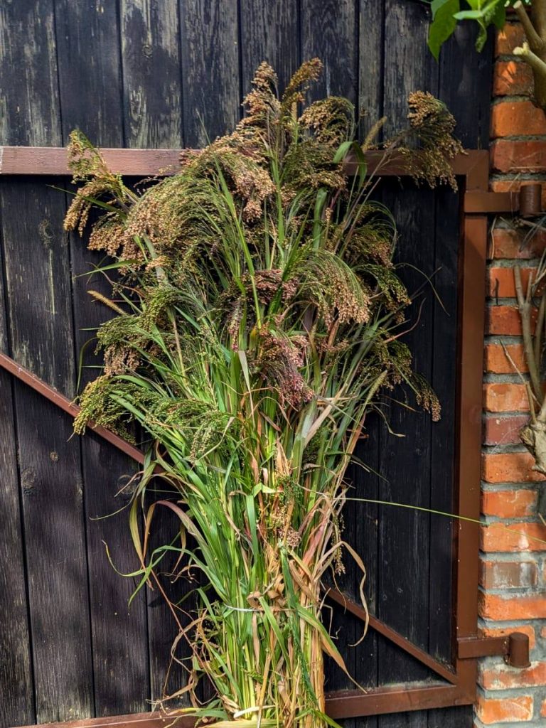 Podczas mojego sierpniowego urlopu byłam też u dziadka na działce, gdzie posadzone miałam proso fioletowe i inną roślinę przeznaczoną na suszki. Wszystko, co posiałam w maju, wyrosło i nadawało się już do ścięcia, więc oczyściłam nieco teren dziadkowego ogródka a sama zyskałam bardzo dużo materiałów na wianki. Nie muszę nawet pisać jak bardzo mnie to raduje.