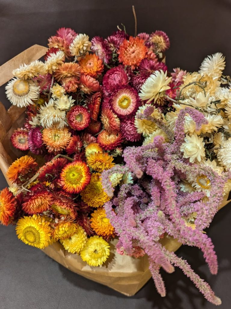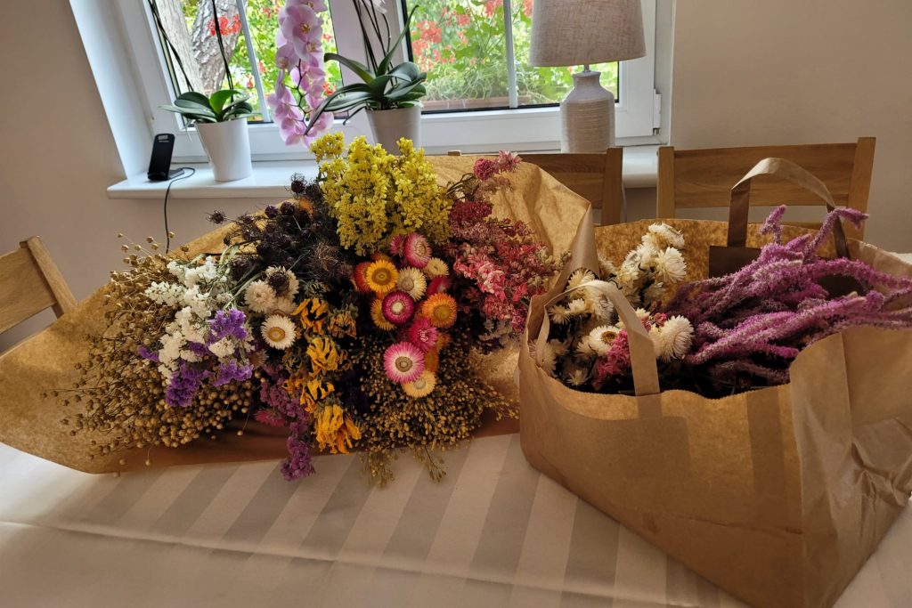 Na urodziny dostałam od rodziców ogromne bukiety złożone z przepięknych kolorowych suszków a wszystko to od niezawodnej Weroniki, z pobliskiej farmy. Pewnie większość kobiet wolałaby bukiet żywych kwiatów na urodziny ale dla mnie, jak się domyślacie bukiet w postaci takich ususzonych roślin to cenniejsze niż złoto.