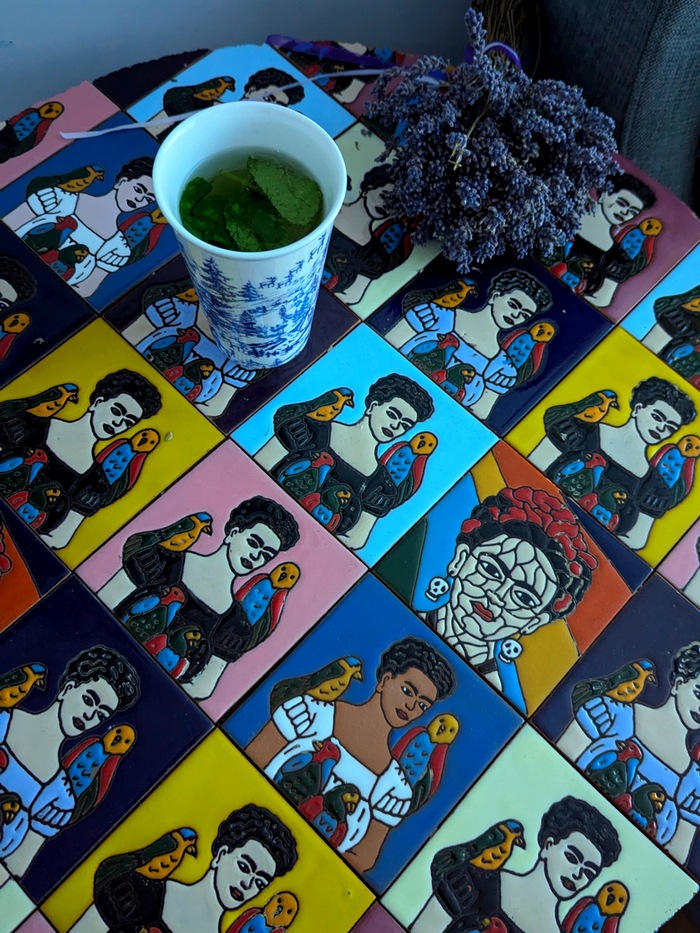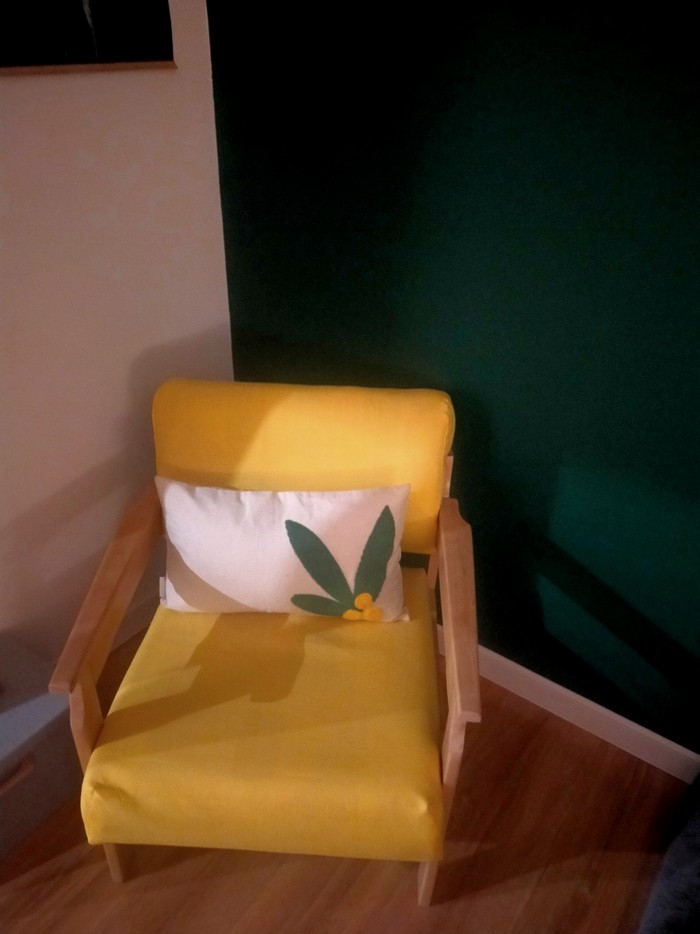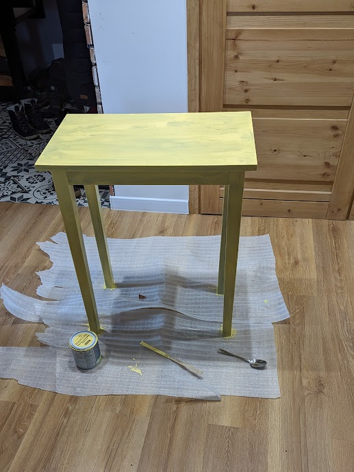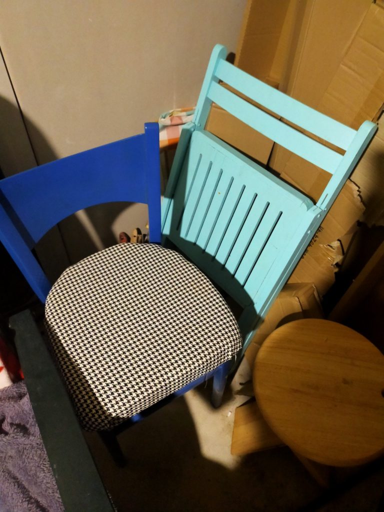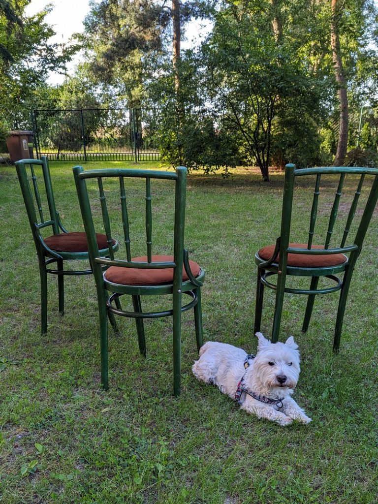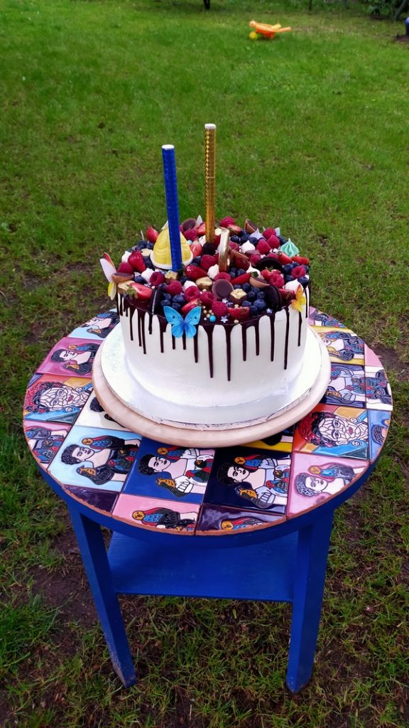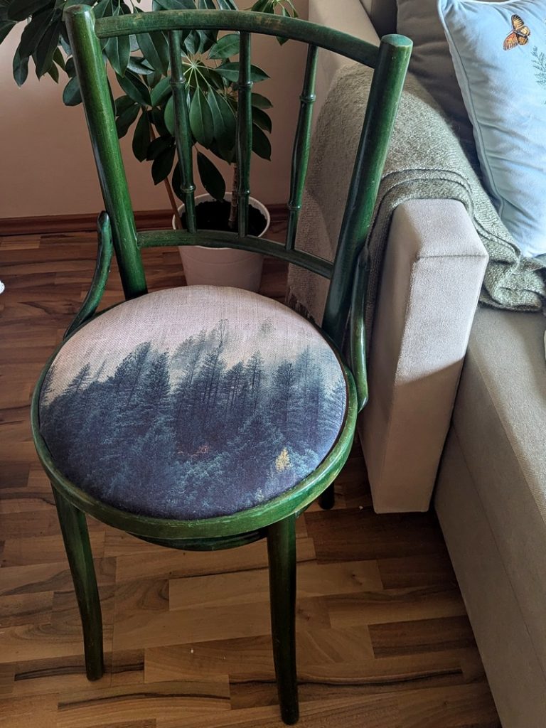 Wracając do drugiego życia mebli to na tyle, na ile potrafię albo z pomocą kogoś bardziej doświadczonego, kto bez problemu obsłuży np. maszynę co cięcia płytek, próbuję je odnowić. Szlifuję, zmieniam ich kolor, zmieniam tapicerkę, nakładam płytki na zniszczony, drewniany blat stołu. Tak było w przypadku okrągłego stolika. Wiele lat stał na działce u dziadków. Z niektórymi meblami jest trudno bo brak mi wiedzy i umiejętności, a czasem i odpowiednich narzędzi, żeby obić fotel z czasów PRL. Już dwa razy poległam przy czymś takim.