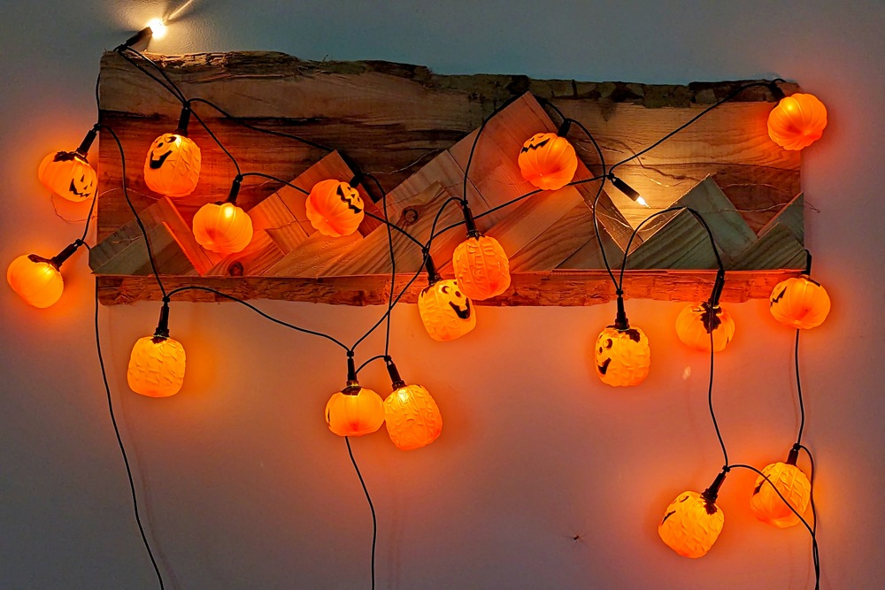 Wracając do dyni, wycina się w niej otwory na oczy, zęby (tak, żeby przypominało to twarz), a ze środka wyciąga cały miąższ, po to, żeby umieścić wewnątrz świeczkę i ją zapalać ją kiedy zapada zmrok. Dekoracja w takim wydaniu (rodzaj lampionu) stawiana jest najczęściej na zewnątrz, przed domem, np. na tarasie. Niejednego może ona przestraszyć, ale o to właśnie chodzi w Halloween. Czyż nie?