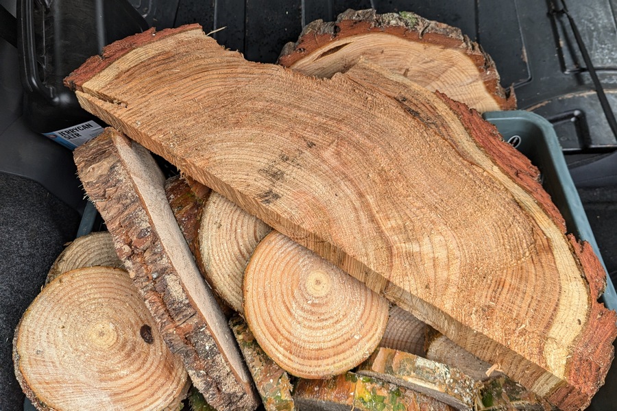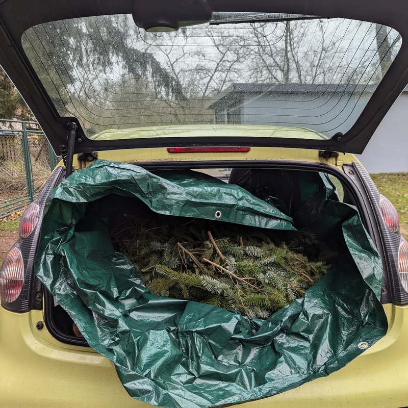 Weekend miałam pracowity. Nauczona doświadczeniem – tym razem wolałam pewne zapasy przygotować sobie wcześniej i móc spokojnie zająć się później samym tworzeniem ozdób. Zorganizowałam sobie plastry drewna do stroików, zieleń, żeby mieć z czego robić wieńce. Myślę, że do Świąt nie wystarczy mi taka ilość, jaką mam w tej chwili, ale do 6 grudnia jak najbardziej. Gałązki świerku, sosny, modrzewia, przechowuję na dworze z uwagi na niską temperaturę, która panuje na zewnątrz. Dzięki temu jest szansa, że dekoracje dotrwają do 24 grudnia, a na tym mi najbardziej zawsze zależy. Kolejny raz przekonałam się, że mój samochód to studnia bez dna i kiedy ładuję do niego materiał na wianki, to nigdy nie mam obaw czy wszystko do niego wejdzie i czy się zapakuję. Musi to bardzo zabawnie wyglądać, kiedy ktoś z boku przygląda się jak wyciągam kolejne kartony, skrzynki, narzędzia.