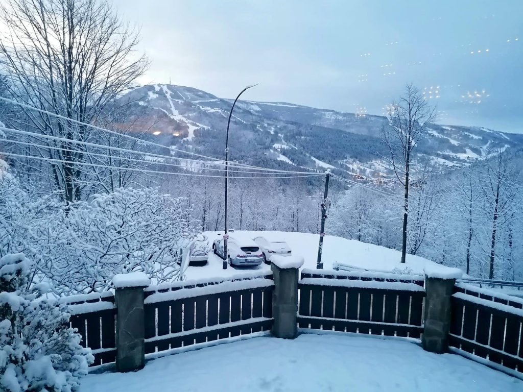 Najważniejsze, co zrekompensowało nam wszelkie niedogodności, było to, że w dzień przyjazdu spadł śnieg i padał tak, z przerwami, do dnia powrotu do domu, czyli do 06.01. Zrobiło się biało dookoła, a krajobraz górski w połączeniu z typowo zimową aurą, tworzył prawdziwą ucztę dla oczu. Przy okazji radość dla dzieci i dla nas, starszych. Dodatkową atrakcją było udogodnienie w postaci jacuzzi na dworze, w którym przez cały czas podgrzewana była woda. Można było korzystać do woli. To dopiero przeżycie – rozgrzać ciało do czerwoności, by następnie chodzić bosymi stopami po śniegu i leżeć robiąc tzw. orła. Dla mnie to nie lada przyjemność, relaks dla ciała i dla duszy. Najwidoczniej mam zadatki na morsa. Ciepłolubnym zrobiło się teraz pewnie jeszcze bardziej zimno?