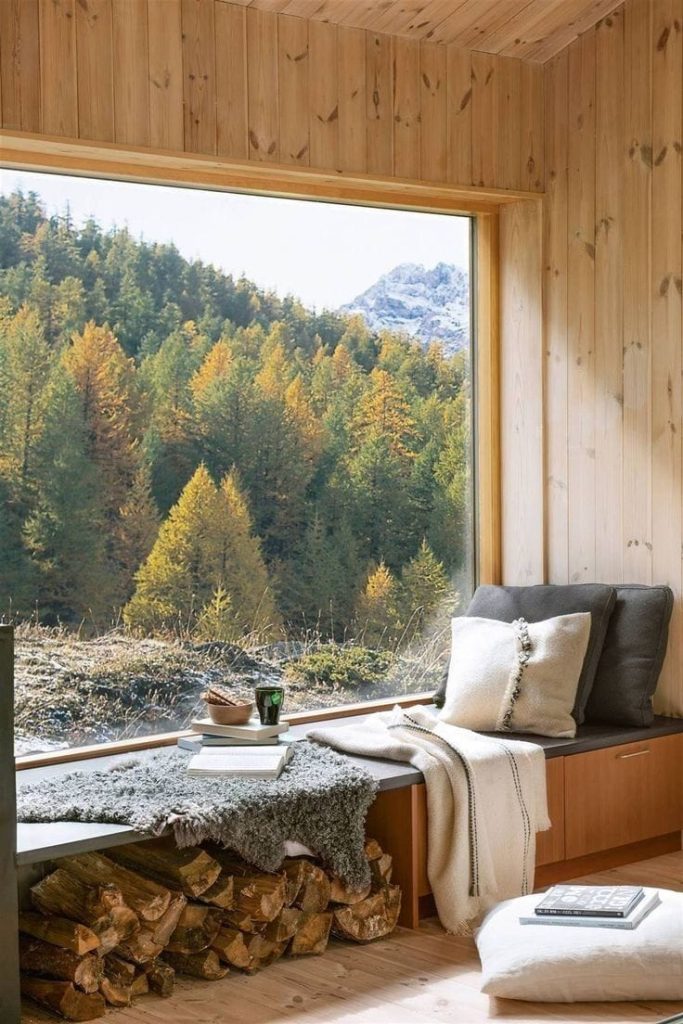 Od lat marzy mi się takie wielkie okno w domu, z siedziskiem, na którym będę mogła usiąść z kubkiem herbaty, w ciepłych skarpetkach, a za szybą będzie widok na drzewa, jezioro lub na góry. Przedstawiam kilka zdjęć, żeby Wam nieco przybliżyć moją idealną wizję takiego wymarzonego miejsca.