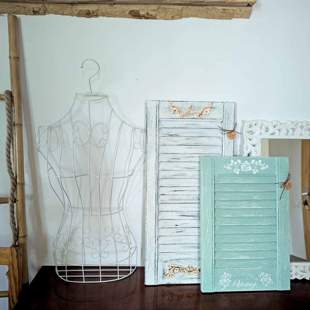Ostatnio udało mi się kupić z drugiej ręki, bardzo fajne popiersie manekina i dwa shuttersy drewniane, które zamierzam wykorzystywać jako tło do zdjęć wianków. Miałam już okazje je wykorzystać, super są. Czegoś takiego szukałam, choć najbardziej będę się cieszyła kiedy znajdę stare drzwi:)