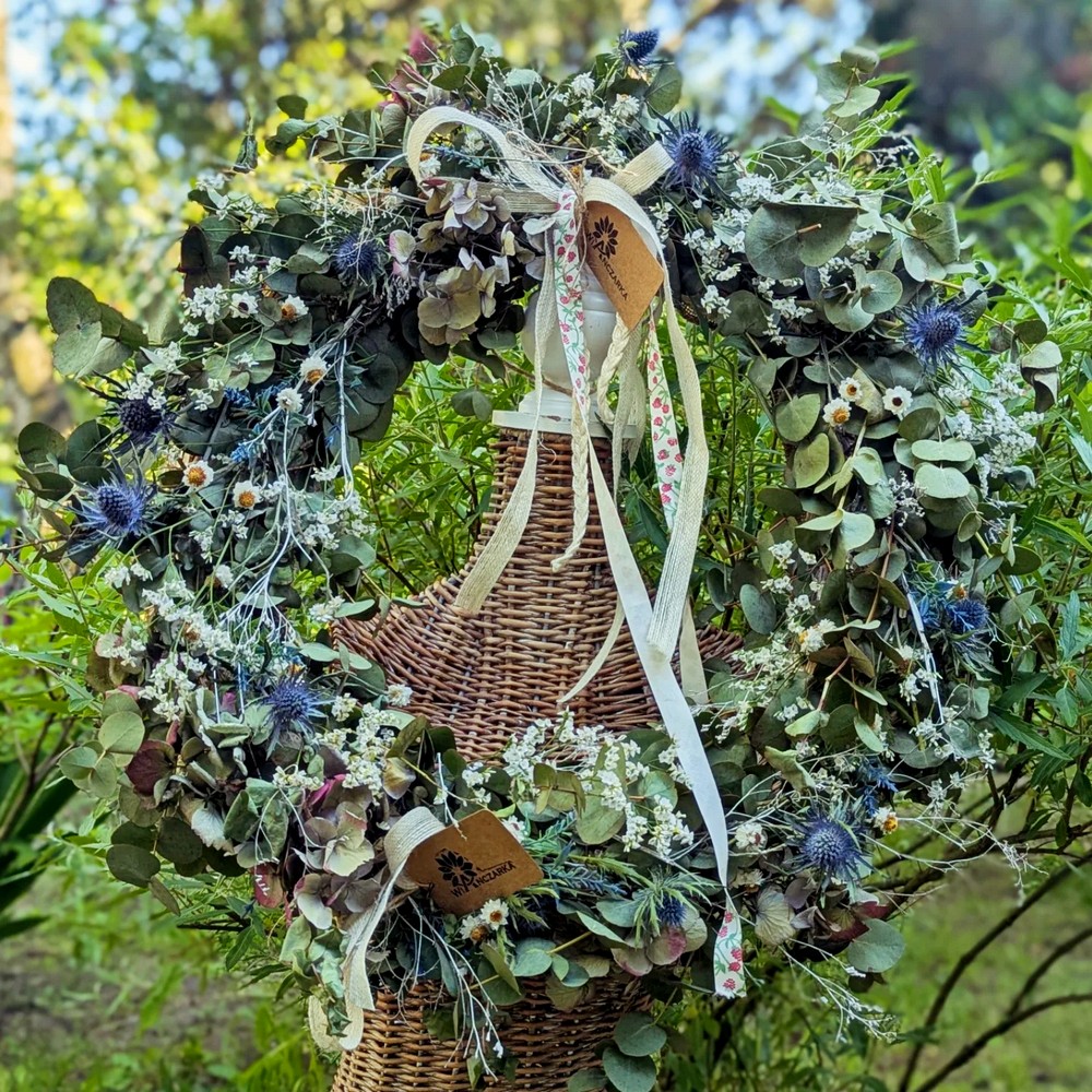 Przy okazji, skoro już przy temacie wianków. Pochwalę się Wam moimi nowościami. W roli głównej eukaliptus, mikołajek, które uwielbiam, ale zapewne nie tylko ja.