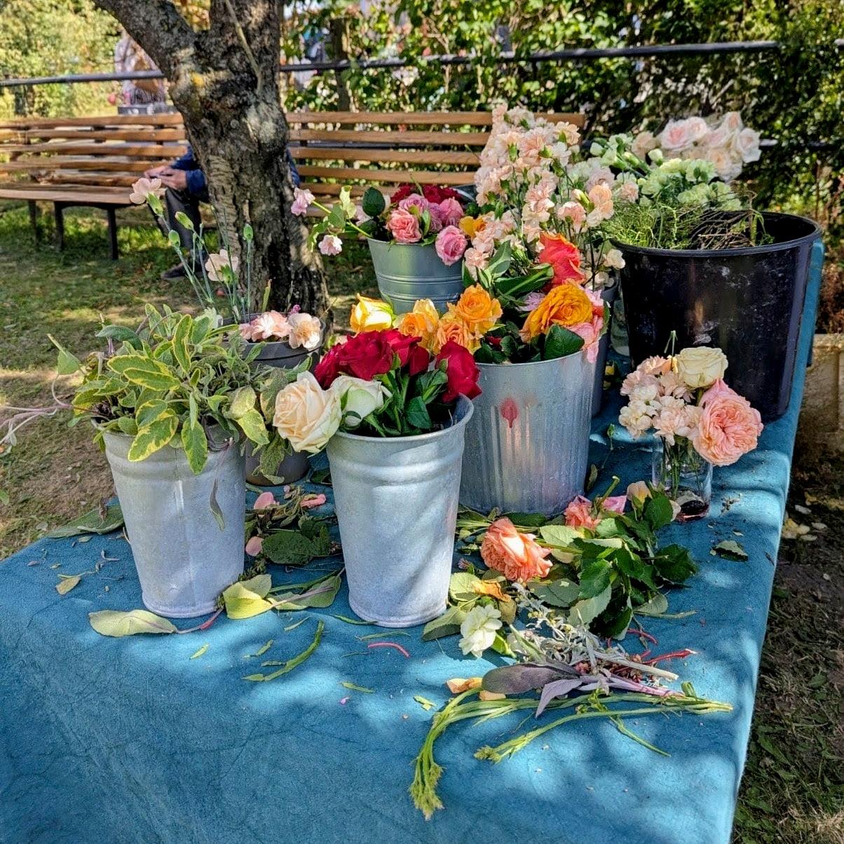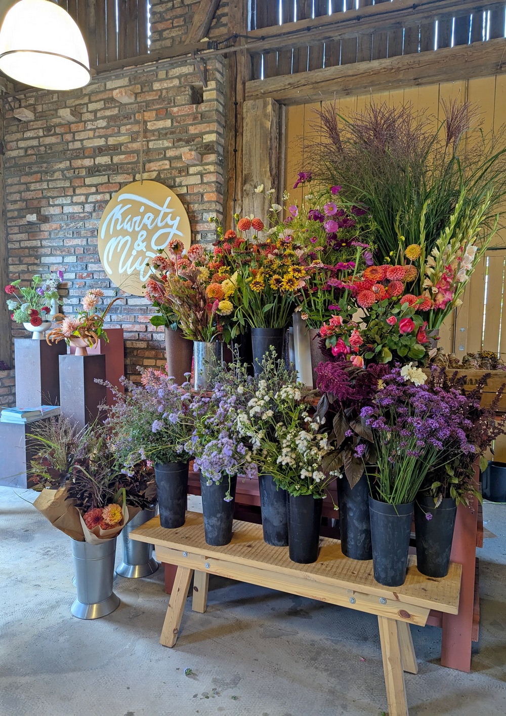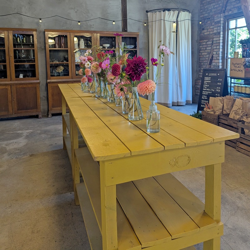 Oj przyznaję się bez bicia. Długo mnie tu nie było i mam nadzieję, że trochę się za mną stęskniliście? Kiedy tworzyłam ostatni wpis, obiecałam, że po warsztatach florystycznych na farmie, zdam Wam relację, o tym jak spędziłam to letnie, niedzielne popołudnie 24 sierpnia 2025 r. Od kilku lat było to moje marzenie, żeby odwiedzić farmę, prowadzoną przez Chłopaków z Kwiaty & Miut. W Poznaniu, na Jeżycach, przy ul. Szamarzewskiego 11/1, mieści się ich urokliwa kwiaciarnia, która według mnie, różni się od innych w mieście (na plus). Mam na myśli głównie styl tworzonych tam bukietów i wieńców, choćby tych pogrzebowych. Są one w kolorach niestandardowych, a nie takich tradycyjnych (czerwony,czarny,zielony), z którymi zwykle kojarzy nam się florystyka funeralna. Naczynia, które wykorzystują np. do udekorowania sali na imprezie – wazony, świeczniki, inne detale, mają swój styl, a kwiaty i rośliny, używane do dekoracji, w większości pochodzą z farmy w Buku. Kiedyś na urodziny kupiłam sobie książkę „Elementarz Kwiatowy” autorstwa Łukasza Marcinkowskiego i Radosława Berenta (właścicieli kwiaciarni, o której piszę). Właśnie wtedy, odwiedziłam ich po raz pierwszy, żeby odebrać zamówiony egzemplarz. Pamiętam,że szłam tam podekscytowana. To miejsce, dla osób, które nic nie wiedzą o właścicielach, będzie po prostu lokalem usługowym i wyłącznie kwiaciarnią,jednak dla mnie, która wie trochę więcej o Nich, o stylu ich pracy, jest to coś zupełnie innego. Przyznaję, że książka nie należała do tanich, jednak warta swojej ceny. Bardzo chciałam ją mieć w swojej kolekcji literatury florystycznej. Pozostałe dwa albumy „O roślinach” i „O kwiatach”, też posiadam. Oba egzemplarze są używane, bo nie ma możliwości, żeby dostać je obecnie w jakiejkolwiek księgarni. Jeśli się mylę to wskażcie proszę nazwę dla innych Czytelników. Szukałam tych książek trochę czasu właśnie na rynku wtórnym. Są pięknie wydane, a autorem zdjęć jest Radek z Kwiaty&Miut.