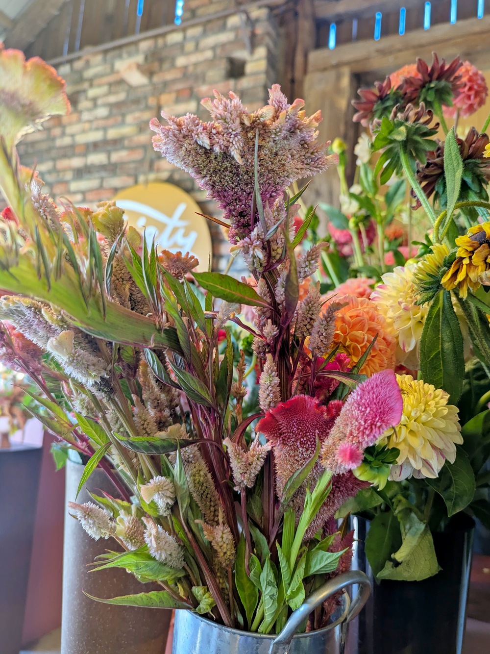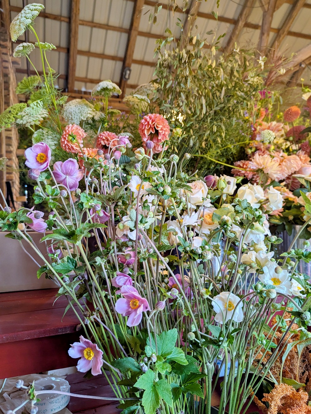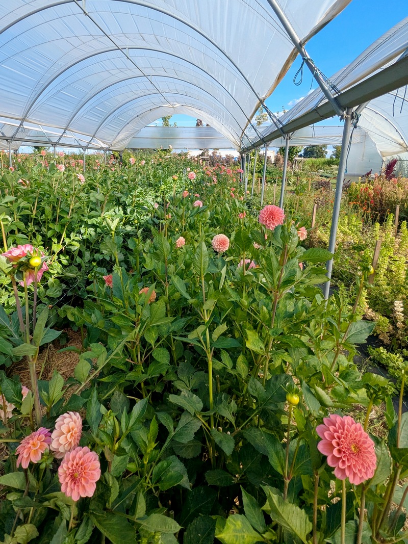 Oj przyznaję się bez bicia. Długo mnie tu nie było i mam nadzieję, że trochę się za mną stęskniliście? Kiedy tworzyłam ostatni wpis, obiecałam, że po warsztatach florystycznych na farmie, zdam Wam relację, o tym jak spędziłam to letnie, niedzielne popołudnie 24 sierpnia 2025 r. Od kilku lat było to moje marzenie, żeby odwiedzić farmę, prowadzoną przez Chłopaków z Kwiaty & Miut. W Poznaniu, na Jeżycach, przy ul. Szamarzewskiego 11/1, mieści się ich urokliwa kwiaciarnia, która według mnie, różni się od innych w mieście (na plus). Mam na myśli głównie styl tworzonych tam bukietów i wieńców, choćby tych pogrzebowych. Są one w kolorach niestandardowych, a nie takich tradycyjnych (czerwony,czarny,zielony), z którymi zwykle kojarzy nam się florystyka funeralna. Naczynia, które wykorzystują np. do udekorowania sali na imprezie – wazony, świeczniki, inne detale, mają swój styl, a kwiaty i rośliny, używane do dekoracji, w większości pochodzą z farmy w Buku. Kiedyś na urodziny kupiłam sobie książkę „Elementarz Kwiatowy” autorstwa Łukasza Marcinkowskiego i Radosława Berenta (właścicieli kwiaciarni, o której piszę). Właśnie wtedy, odwiedziłam ich po raz pierwszy, żeby odebrać zamówiony egzemplarz. Pamiętam,że szłam tam podekscytowana. To miejsce, dla osób, które nic nie wiedzą o właścicielach, będzie po prostu lokalem usługowym i wyłącznie kwiaciarnią,jednak dla mnie, która wie trochę więcej o Nich, o stylu ich pracy, jest to coś zupełnie innego. Przyznaję, że książka nie należała do tanich, jednak warta swojej ceny. Bardzo chciałam ją mieć w swojej kolekcji literatury florystycznej. Pozostałe dwa albumy „O roślinach” i „O kwiatach”, też posiadam. Oba egzemplarze są używane, bo nie ma możliwości, żeby dostać je obecnie w jakiejkolwiek księgarni. Jeśli się mylę to wskażcie proszę nazwę dla innych Czytelników. Szukałam tych książek trochę czasu właśnie na rynku wtórnym. Są pięknie wydane, a autorem zdjęć jest Radek z Kwiaty&Miut.