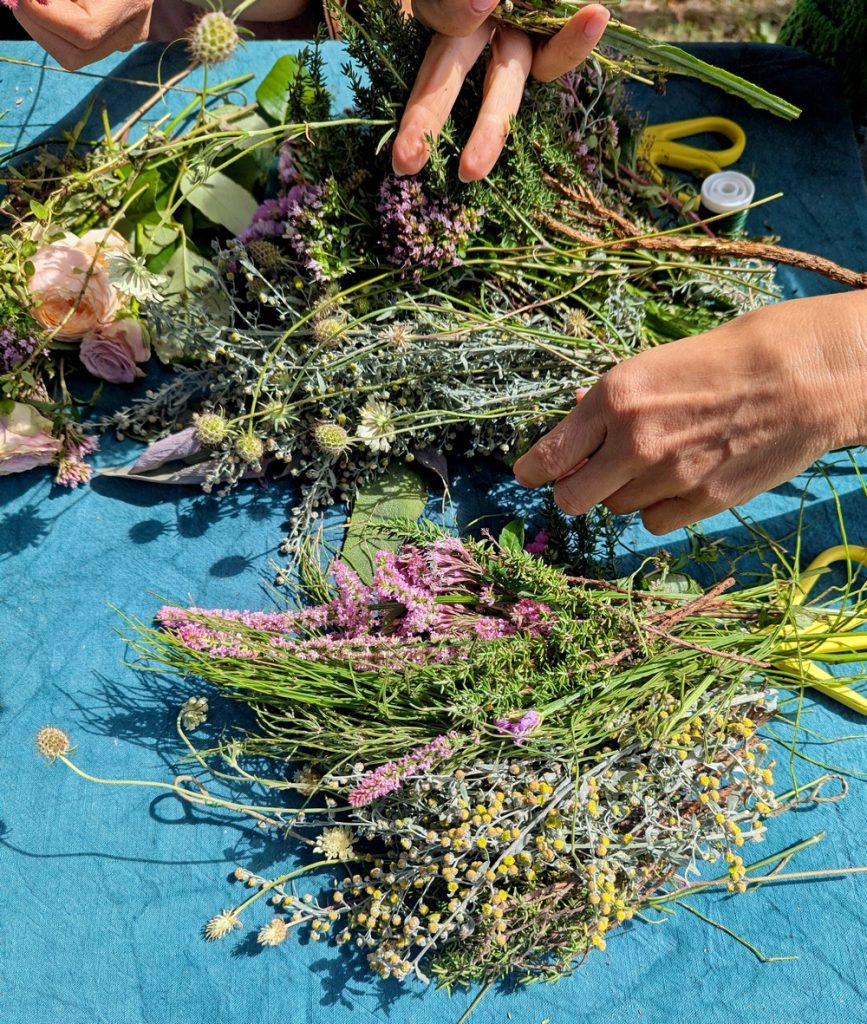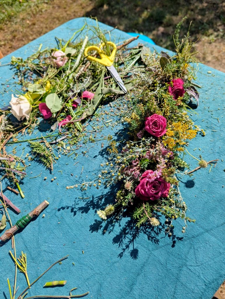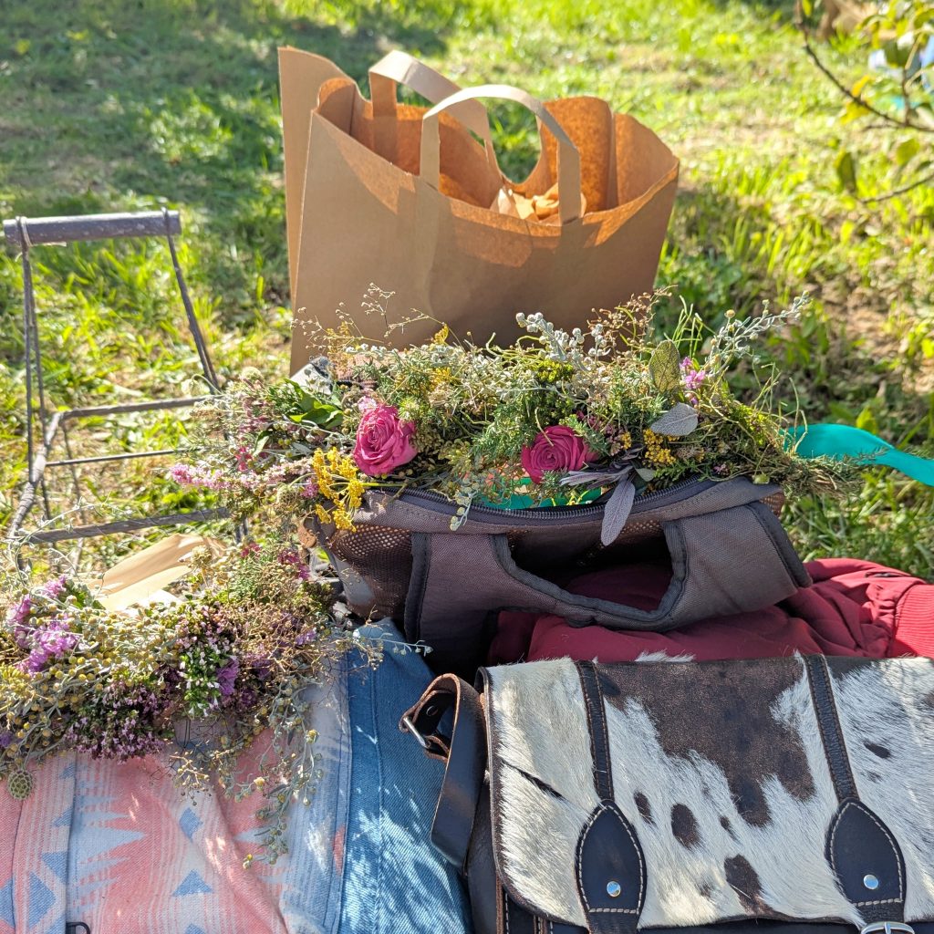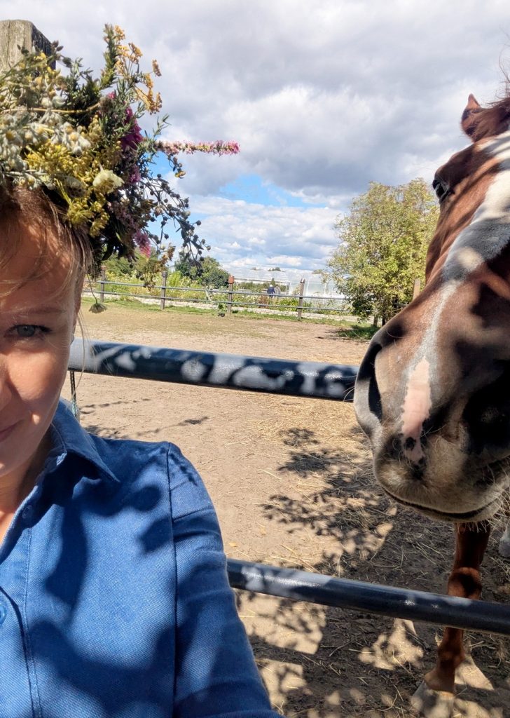 Jednego roku w czasie, kiedy odbywał się piknik, przebywałam na wakacjach, innym razem panowała pandemia, aż w końcu w tym roku się udało, za co jestem losowi ogromnie wdzięczna. Na szczęście wszystko tak się ułożyło, że mogłam tam być. Wybrałam się z moją przyjaciółką (i Jej rodziną), która podobnie jak ja, kocha tworzyć wianki, a kiedy dowiedziałam się, że w programie wydarzenia przewidziano warsztaty plecenia wianków z żywych kwiatów i ziół, nie potrzebowałyśmy, żeby nas ktoś specjalnie namawiał do wzięcia w tym udziału.